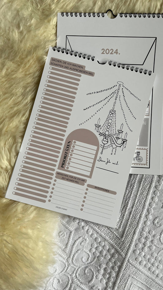 2024-minimalistischer Wand-Kalender mit handillustrierten Motiven
